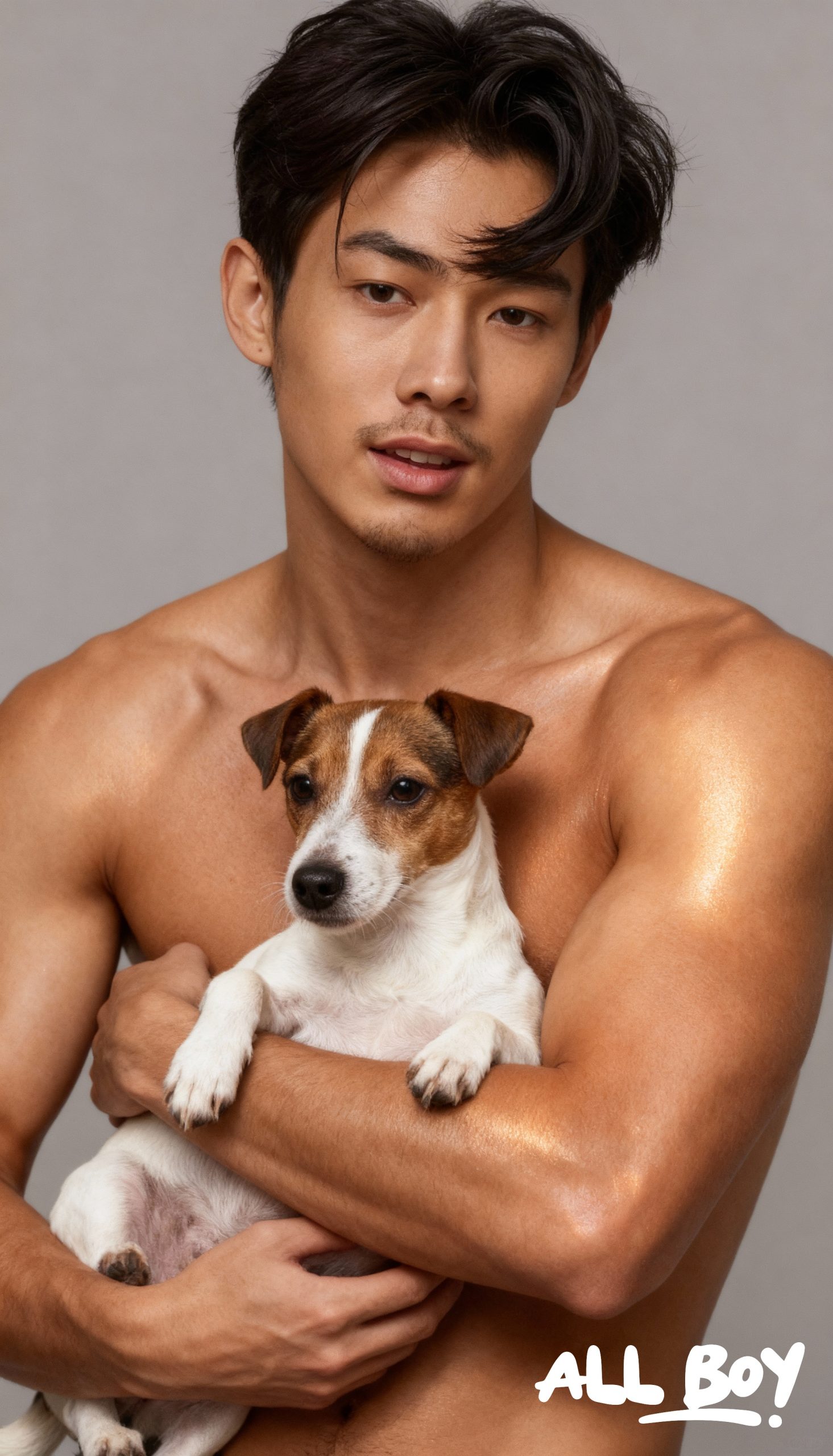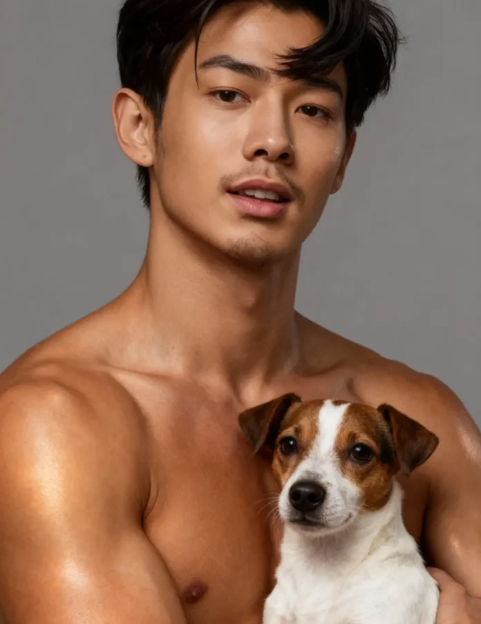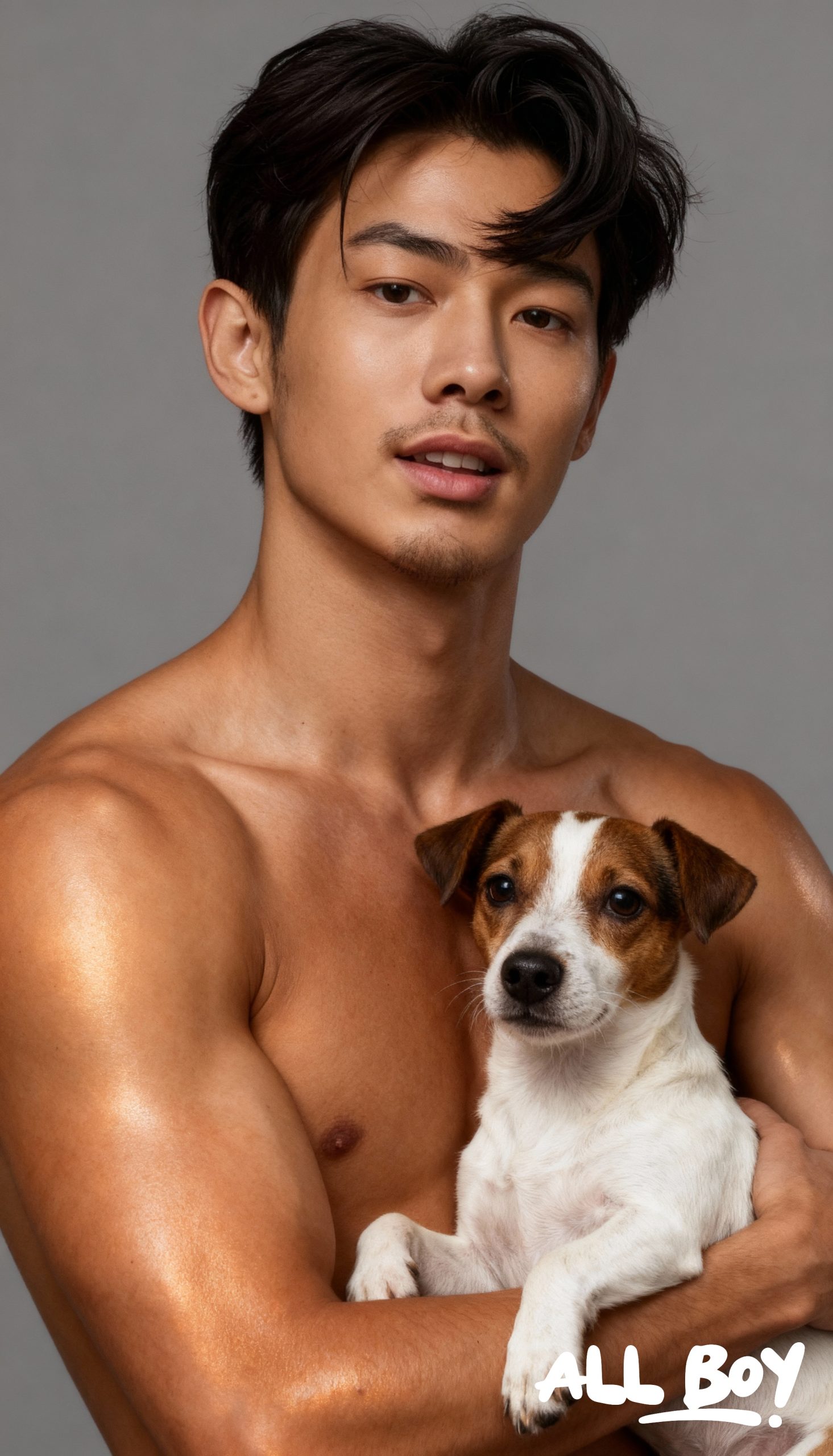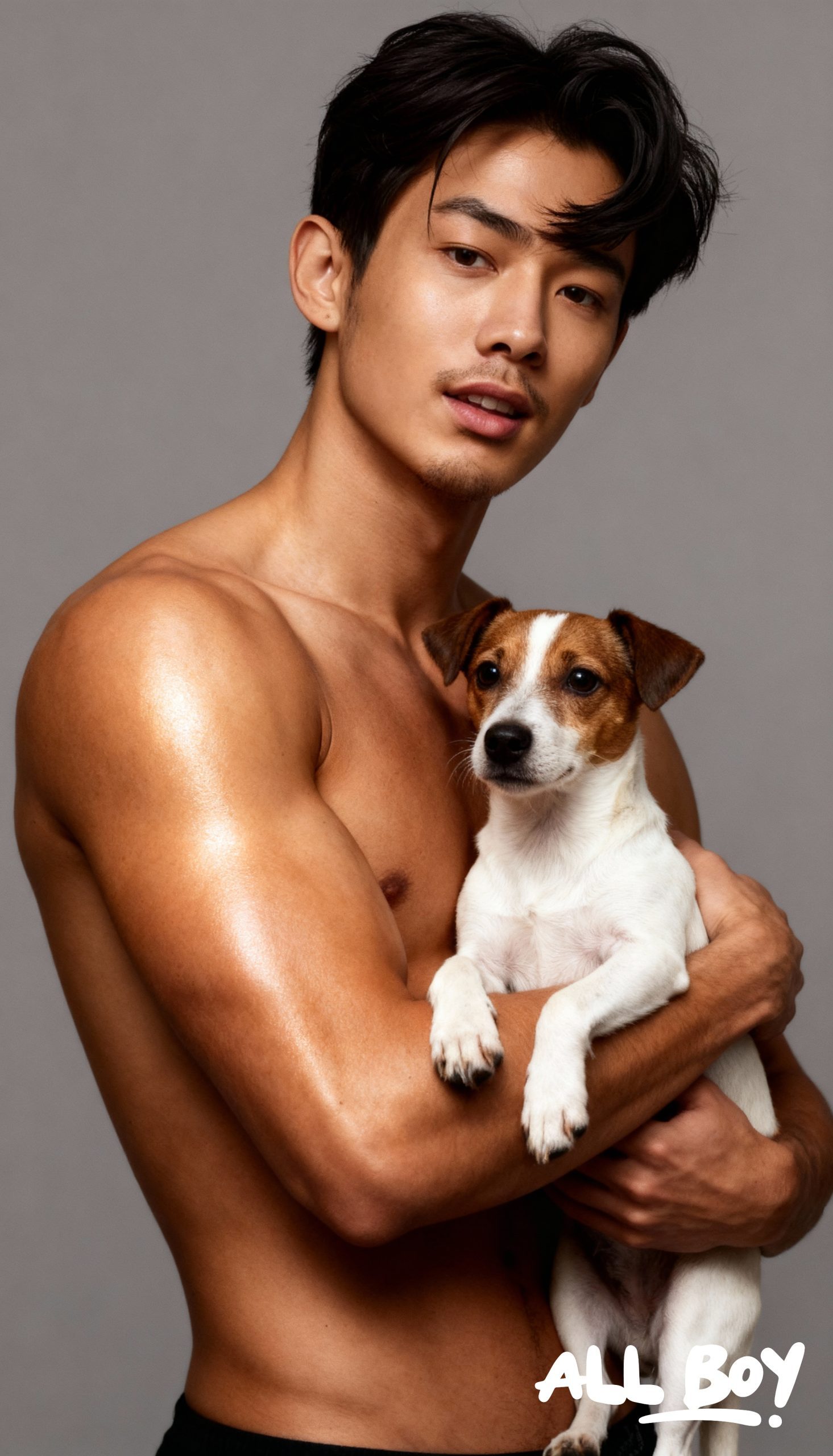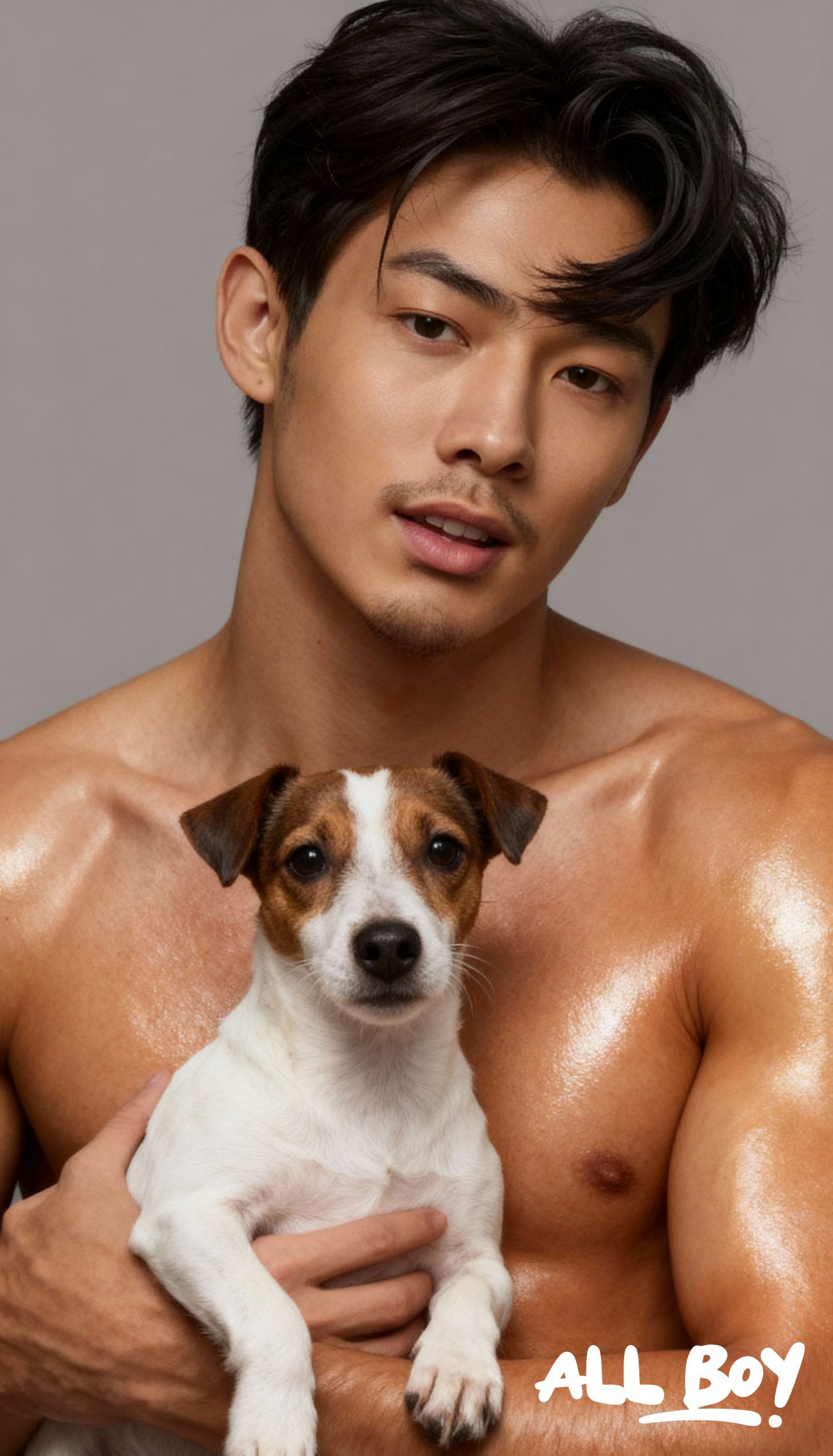 Just when you thought it couldn’t get any better, they add a puppy! This is a dangerous combination of handsome and adorable. He has such a gentle and caring look while holding that cute little dog. It’s the perfect mix of strength and sweetness. The puppy is looking right at us, but it’s hard to ignore that confident gaze and glowing skin. My heart is officially melting!