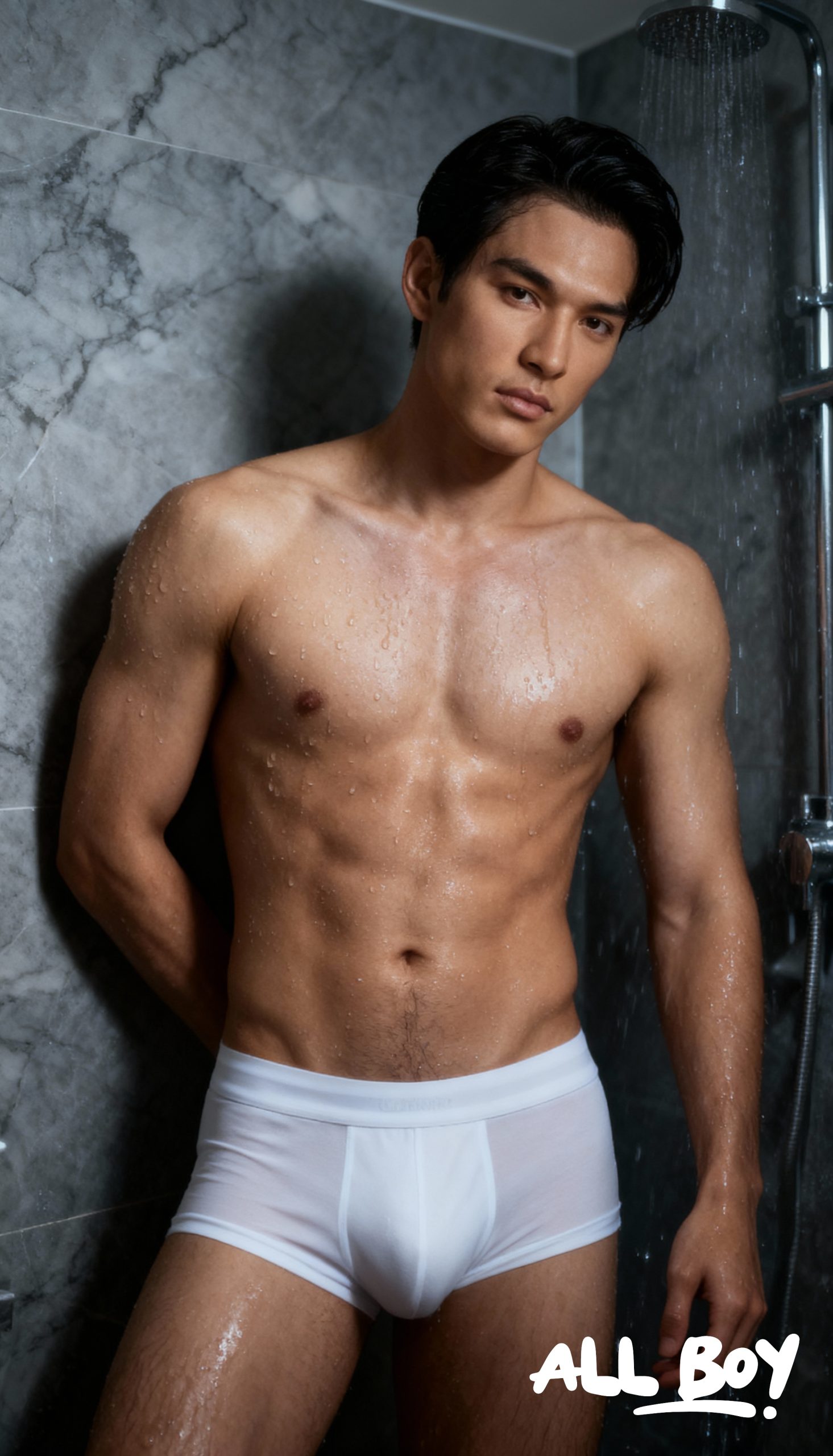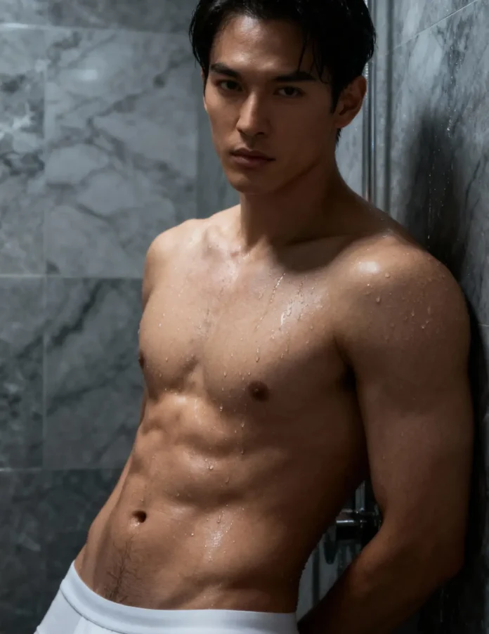 โอ้โห…ภาพเซ็ตนี้คือที่สุดของความร้อนแรงเลยครับ! ยืนอาบน้ำพร้อมกับส่งสายตาที่ทรงพลังมองตรงมาแบบนี้ บอกเลยว่าใจสั่นไปหมดแล้ว หยดน้ำที่เกาะอยู่บนร่างกายยิ่งขับเน้นให้รูปร่างของเขาดูโดดเด่นขึ้นไปอีก เป็นภาพที่ทั้งเซ็กซี่และมีเสน่ห์ดึงดูดมากๆ หยุดมองไม่ได้เลยจริงๆ ครับ